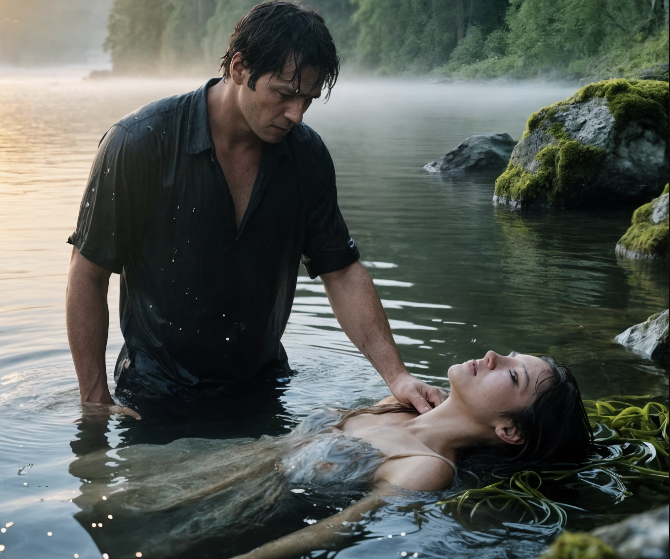 Trascinata la ragazza a riva, senza sentire la propria spossatezza si mise all’opera. Mani abituate al lavoro duro si muovevano rapide e precise — rotazioni, compressioni, respirazione artificiale. Dalle sue vie aeree sgorgò acqua torbida di fiume, e il corpo salvato fu scosso da una tosse sorda e intermittente. Il respiro, debole ma regolare, tornò. Ora bisognava scaldarla. Raccolse da parte i tizzoni morenti del vecchio focolare e, sul punto riscaldato dalla cenere, preparò in fretta una base con pietre piatte del fiume, coprendola poi con un spesso strato di rami soffici d’abete. Adagiò con cura la ragazza su quel giaciglio improvvisato e la coprì con la sua unica giacca, impregnata di fumo e sudore. Raccolse le cose sparse lungo la riva, si infilò a fatica i vestiti fradici sul corpo intirizzito e si sedette accanto al nuovo fuoco acceso, tendendo verso le fiamme le mani tremanti, bianche per il freddo.
