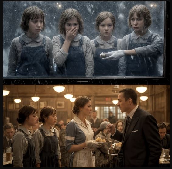 In una notte di pioggia, nel silenzio ovattato di una cittadina di provincia, Emily Parker alzò lo sguardo dal registratore e vide, oltre il vetro rigato di condensa del suo diner, quattro bambine rannicchiate sotto la tettoia. Stavano strette come pulcini, i capelli appiccicati alla fronte, i vestiti troppo leggeri e strappati in più punti. Non piangevano nemmeno: avevano quello sguardo fisso e stanco che non appartiene ai bambini, ma a chi ha imparato presto che nessuno arriva a salvarti.