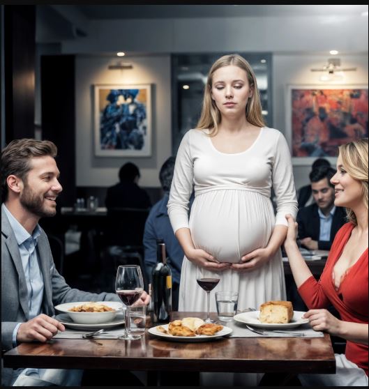 Dall’altra parte della sala, tra tavoli e sedie, avanzava una cameriera con passo misurato: abito nero premaman, scarpe antiscivolo, capelli raccolti in uno chignon pratico. Il viso era leggermente più pieno, ma gli occhi… quelli non potevano ingannarlo.