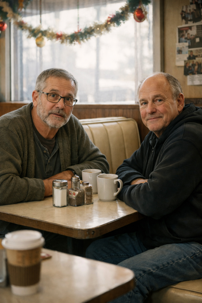 Sembrava avere la nostra età, indossava un cappotto blu scuro e stringeva una borsa di pelle nera vicino al fianco. Si fermò appena dentro la porta, scrutando la tavola calda con quell’incertezza che non si può fingere.