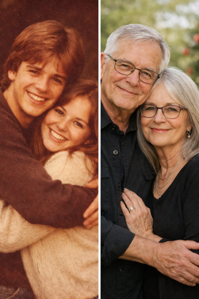 Io a 17 anni, nel mio cappotto blu, con il dente anteriore scheggiato visibile perché stavo ridendo. Il braccio di Dan sulle mie spalle, come se potesse proteggermi da tutto.