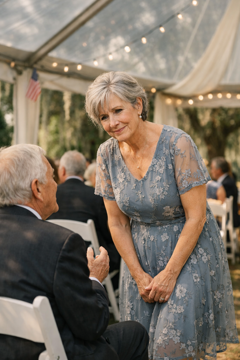 Questa convinzione è durata fino alla mattina del matrimonio del mio unico figlio, quando una giovane coordinatrice con un auricolare e le mani tremanti mi ha accompagnata oltre le prime file come se fossi una consegna richiesta da qualcuno ma che nessuno desiderava davvero vedere, e ha indicato una sedia così in fondo che riuscivo a sentire il calore del parcheggio che saliva oltre il tendone.