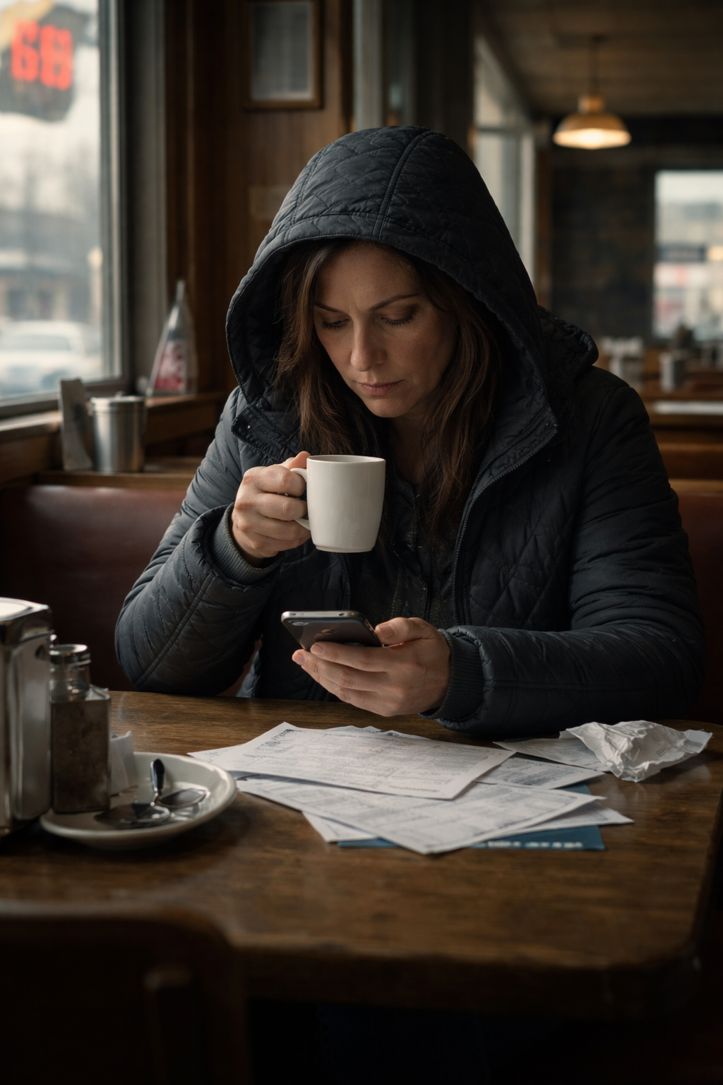 Quando finalmente mi sforzai di muovermi, capii che non potevo solo stare lì a consumare benzina e fingere che fosse temporaneo. Trovai una piccola caffetteria a pochi isolati di distanza—di quelle con i tavoli scheggiati e un cartello scritto a mano: “WiFi con acquisto.” Presi il latte più economico e mi sistemai in un angolo, abbracciando la tazza come se potesse contenere il mio futuro.