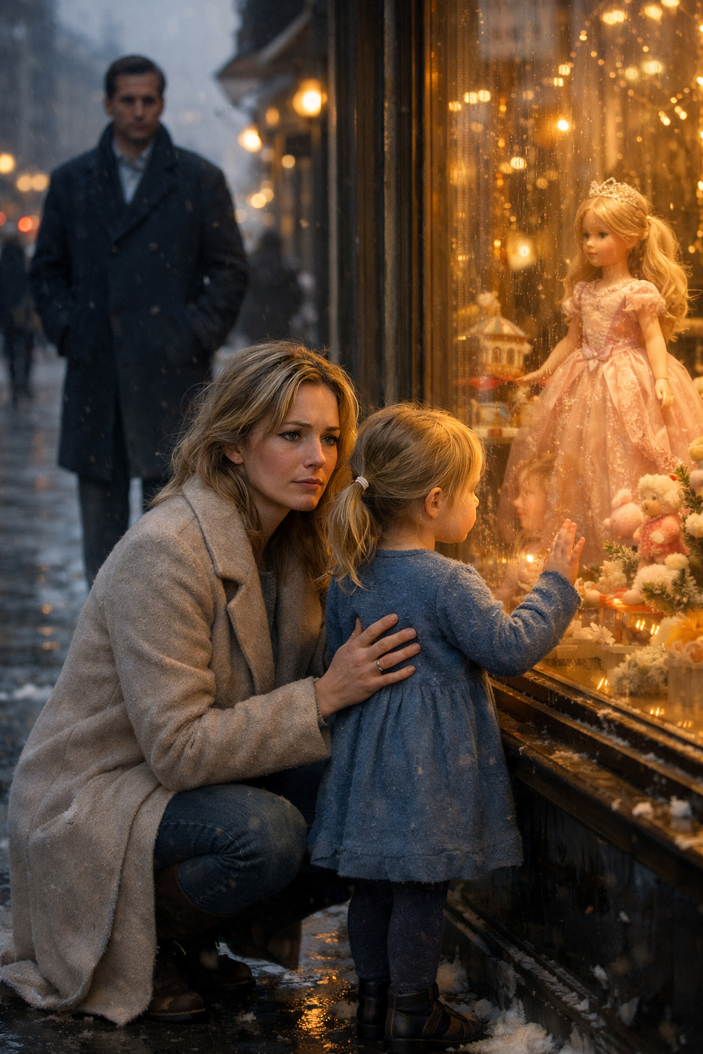 Harper Calloway era accucciata accanto all’ampia vetrina del negozio di giocattoli, con le ginocchia doloranti sia per il freddo sia per i lunghi mesi di lavoro che l’avevano consumata in modi che nessun altro poteva vedere davvero, mentre accanto a lei la figlia di sei anni, Lila, stava così vicina che le loro spalle si sfioravano, come se la bambina capisse senza bisogno di spiegazioni che la mamma aveva bisogno di qualcosa di saldo a cui appoggiarsi.