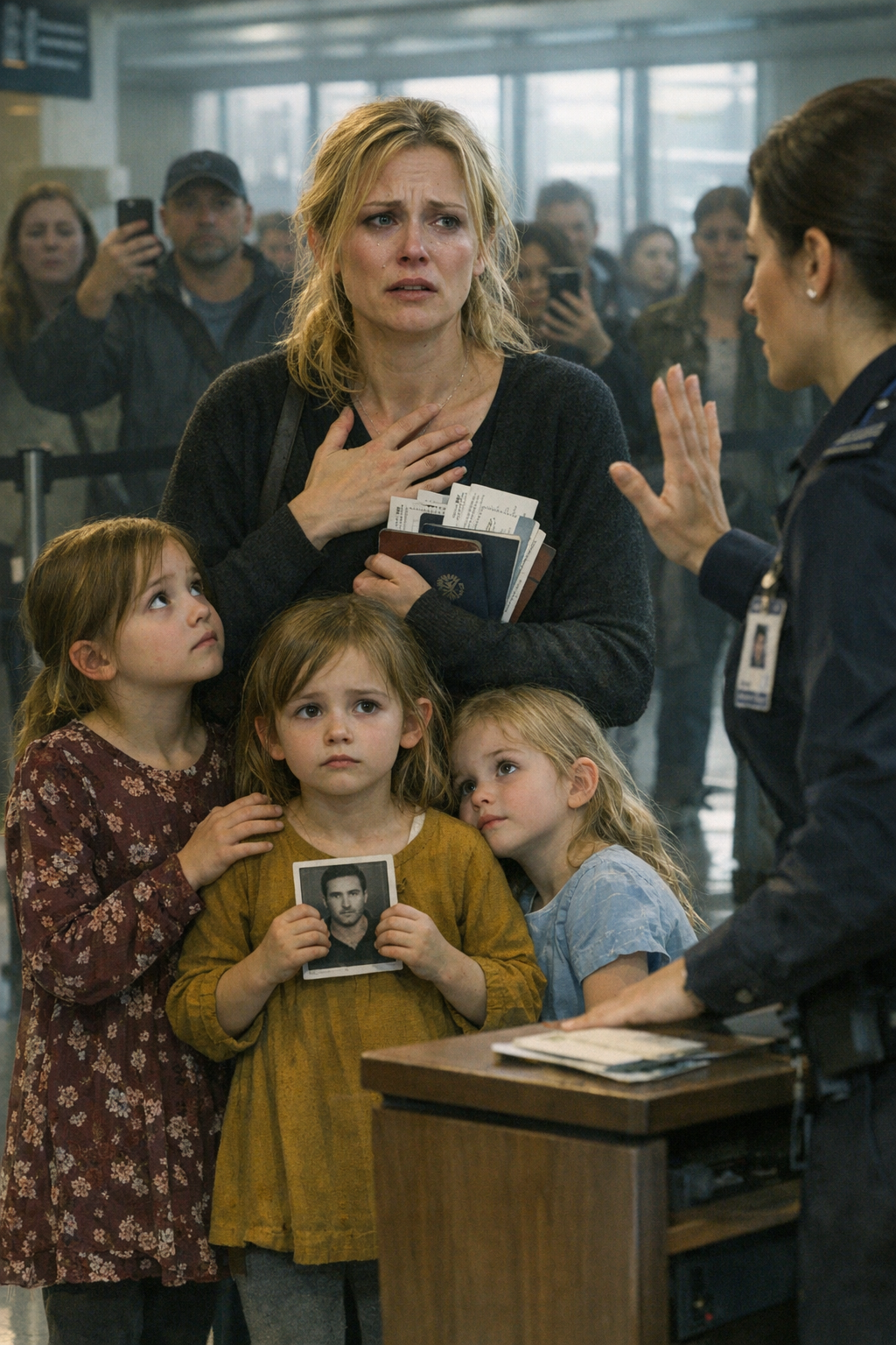 La bambina al centro fece un passo avanti, l’espressione calma ma concentrata, mentre guardava oltre me verso il banco del gate con una serietà che non apparteneva a qualcuno della sua età.