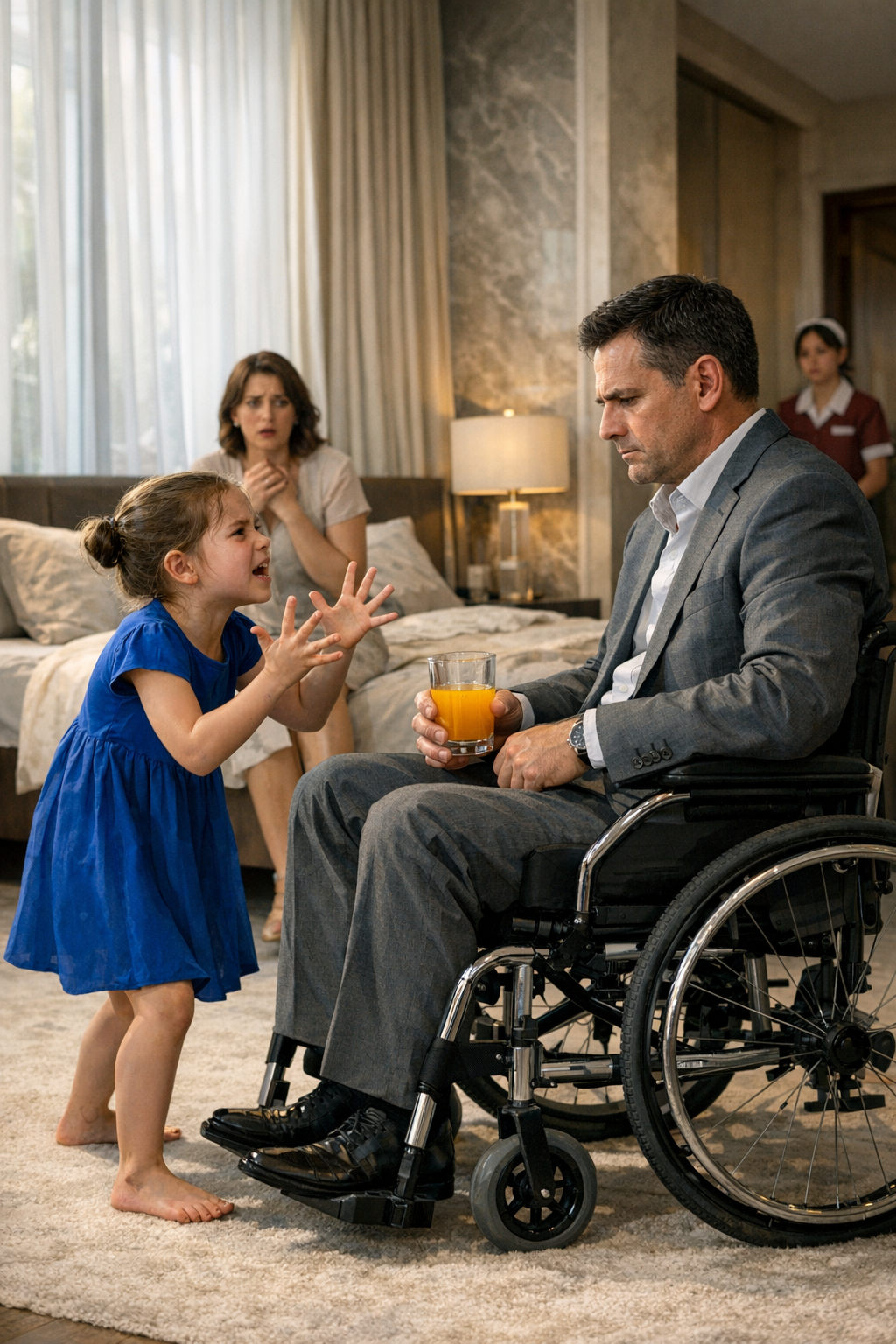 Un uomo d’affari in sedia a rotelle si è fidato della sua devota fidanzata per supervisionare tutta la sua guarigione dopo un evento che gli ha cambiato la vita — finché una bambina tranquilla ha indicato il suo succo del mattino e si è rifiutata di lasciarglielo bere, ignara che quello fosse la chiave del suo misterioso declino che nessuno aveva mai messo in discussione