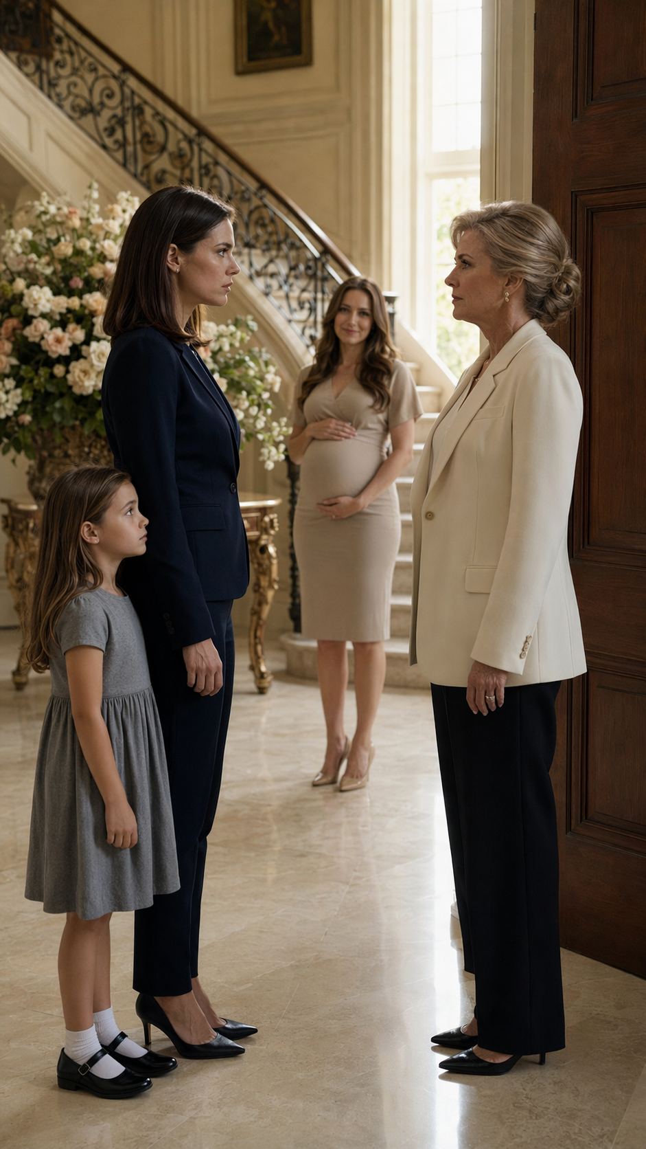 Mi trovarono in piedi nell’atrio principale, vestita con un semplice maglione nero e pantaloni, mia figlia Lily appena dietro di me con una piccola mano avvolta attorno al mio polso, e Beatrice non perse tempo a pronunciare il discorso che aveva chiaramente provato durante il viaggio.
