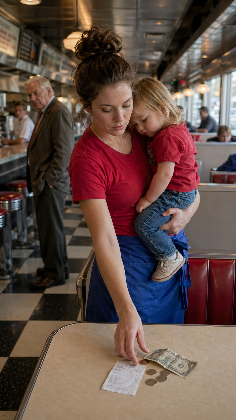 Per un osservatore era una piccola offesa—un cliente scortese, una mancia dimenticata. Ma per Marisol, a ventisette anni, che viveva in una cittadina che sembrava inghiottire i sogni interi, quello zero era un colpo ritmico nel feretro del budget mensile. I suoi piedi, avvolti in economiche scarpe antiscivolo, pulsavano di un calore ritmico che rispecchiava il dolore nel suo petto. Era una madre single, e nel suo mondo il margine tra “sopravvivere” e “affondare” si misurava in banconote da cinque dollari e nella gentilezza degli sconosciuti.